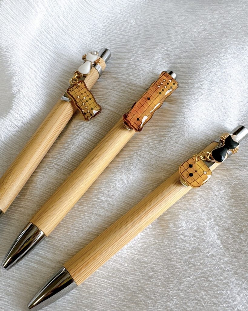今は囲碁をモチーフにしたアクセサリーを作っています。あとはボールペンとかしおりです。囲碁を打つ以外にも、もっと楽しめるようにと思っています。